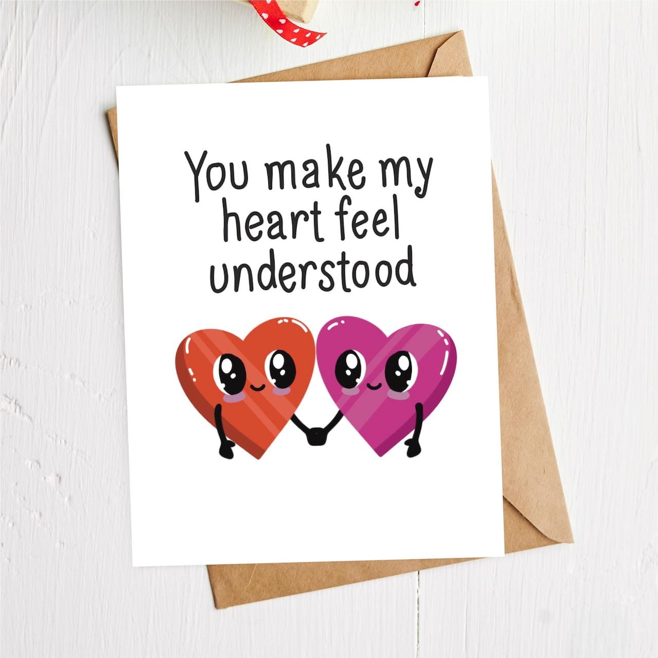 Share your true feelings with your one true love this Valentine's day. This adorable "you make my heart feel understood" greeting card is the perfect way to make them feel special.
