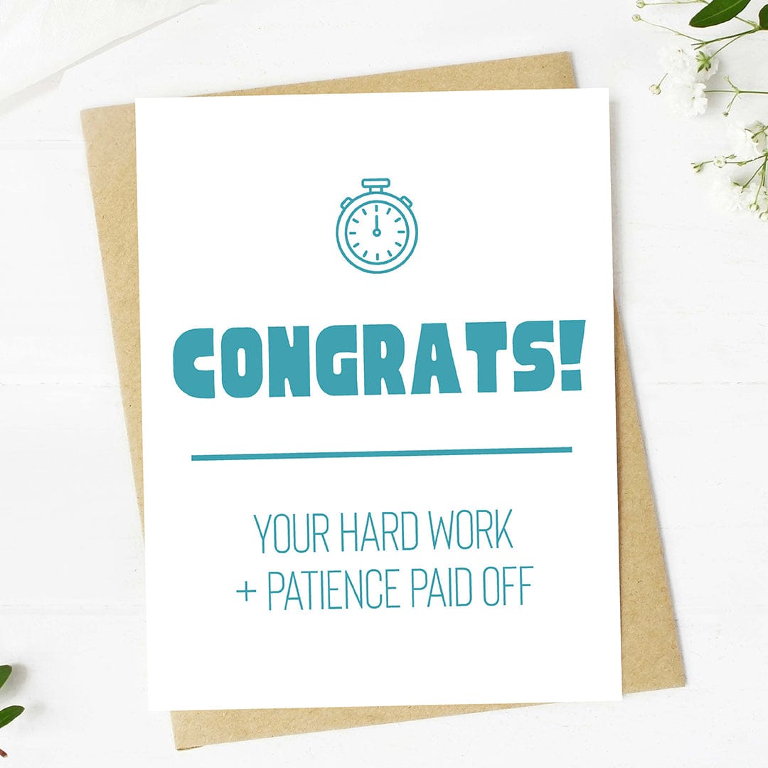 Send a heartfelt "congrats! your hard work and patience paid off" with this fun graduation card - the perfect way to honor their big achievement.