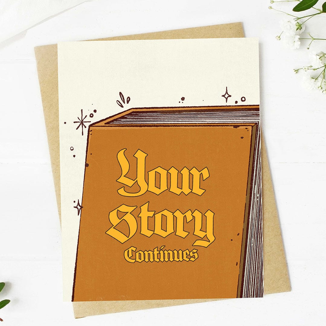 Send heartfelt birthday wishes with this extra special book-themed birthday card. This wonderful card reads "your story continues".