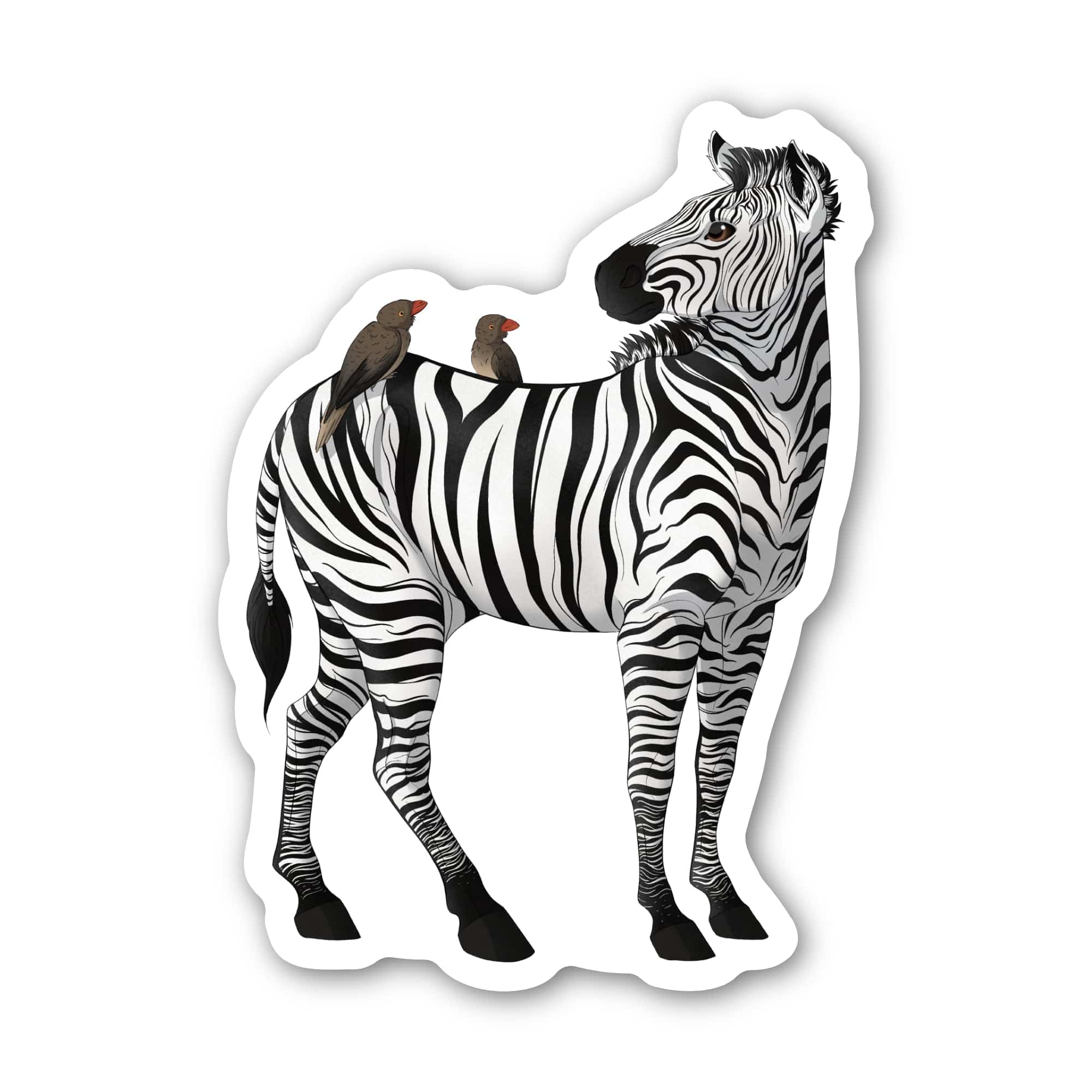 Share your love of zebras with our realistic zebra & birds sticker - perfect for all the zebra enthusiasts out there! High quality vinyl sticker. Great to decorate laptops, water bottles, car windows, coolers, suitcases, bikes, kayaks, phone cases, journals, and more.
